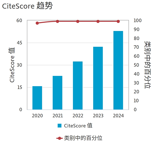 CiteScore™ 2024 与CiteScore™ 2023计算方法一致,计算在 2021-2024 年间对 2021-2024 年所发表文章、评论、会议论文、书籍章节和数据论文进行的引用次数,然后将该次数除以在 2021-2024 年所发表的出版物总数。