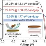 图4. (a) 晶界(GBs)对低性能和高性能钙钛矿太阳能电池(PSCs)中电子行为影响的示意图。(b)晶界处光电效率(PPE)与钙钛矿太阳能电池功率转换效率(PCE)相关性的统计结果,显示PCE范围为16.10%至22.45%。插图展示了平均PPE与太阳能电池PCE之间的指数增长关系。