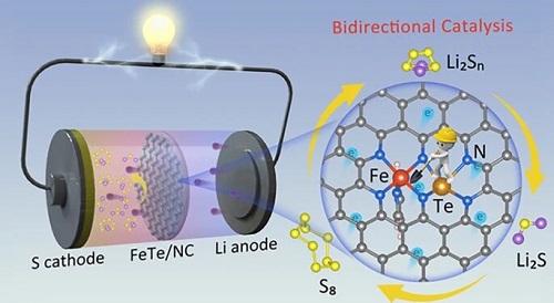 3. Fe–Te 原子对催化剂使锂硫电池具备了优异的倍率性能、出色的循环稳定性以及理想的面积容量。