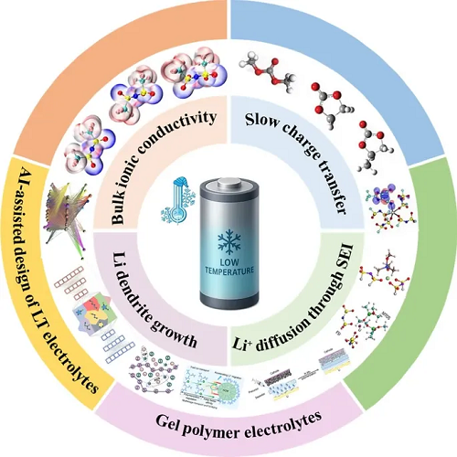 2. 从电解液工程设计与人工智能辅助优化的双重视角,总结和梳理了近年来提升锂离子电池低温性能的前沿策略与研究进展。