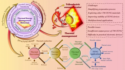 传统化石燃料的无节制使用影响全球生态安全,发展可再生能源显得尤为关键。在全球“碳中和”背景下,我们必须最大限度地利用所有潜在的可再生能源。传统能源管理技术往往与绿色可持续发展的总体趋势相悖,摩擦纳米发电机(TENG)作为微能源革命性技术应运而生。实际应用过程中,大量热能以废热形式损失,未能得到有效利用。因此,有效的热管理(TM)对于确保TENG在复杂环境中稳定高效运行至关重要。