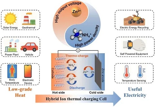 低品位废热在工业生产与民用生活场景中大量存在,这类热能普遍具有温度低、分布散的特点,传统回收技术难以实现经济高效的转化利用,造成了严重的能源浪费。锌基热充电器件凭借离子热脱出与热扩散的耦合作用,可直接将低品位热能转化为电能并完成原位存储,为上述能源回收难题提供了一条极具潜力的解决路径。然而,这类器件的发展长期受限于Zn2⁺扩散动力学迟缓的核心缺陷,直接导致其输出功率密度与能量转换效率偏低,难以满足实际应用的性能需求。如何在保留锌基热电器件高输出电压优势的基础上,突破离子扩散速率的瓶颈,构建兼具高功率密度与长时稳定运行能力的热充电体系,成为该领域亟待攻克的关键科学问题。
